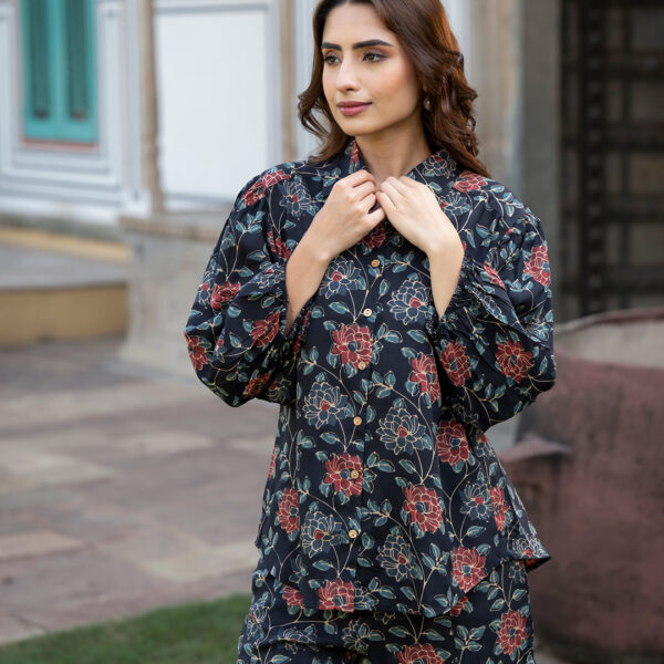 1 review for Printed Puff Sleeve Fit & Flare Maxi Dress