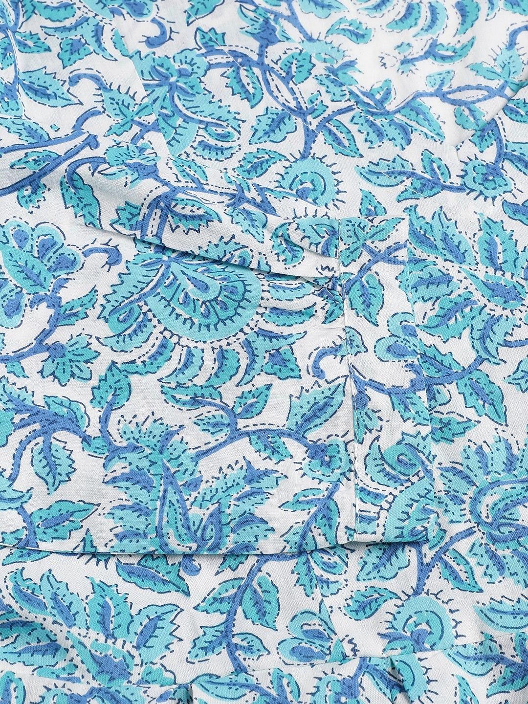 Blue Floral Print Cotton Fabric Kurta with Pant
