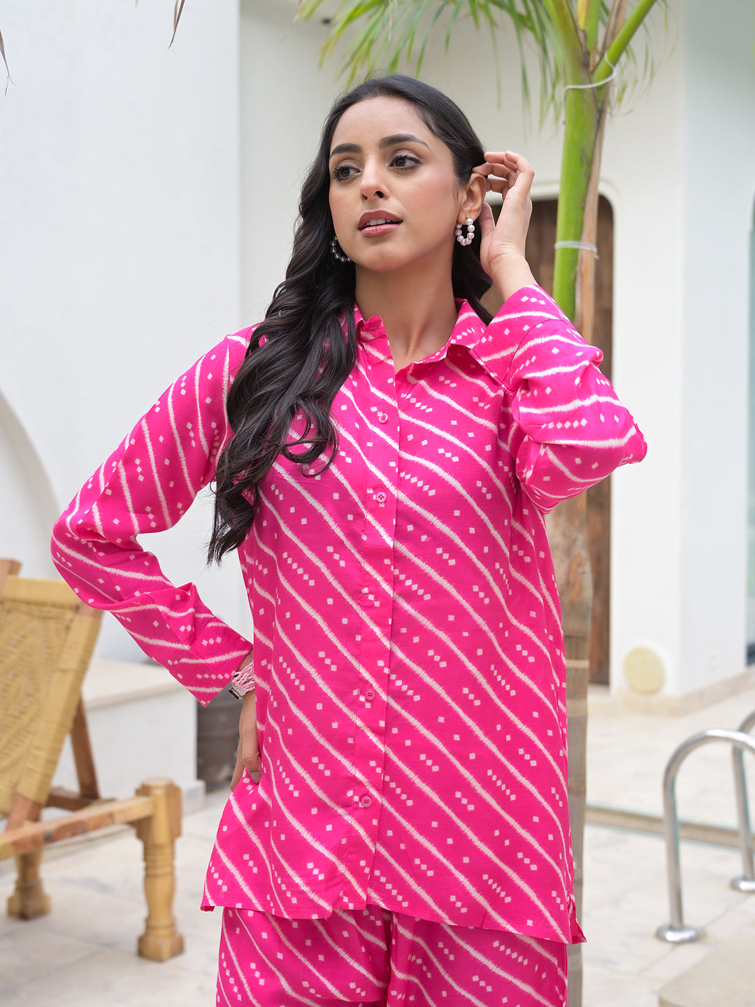 Women Pink Striped Shirt With Trousers Co-Ords Set